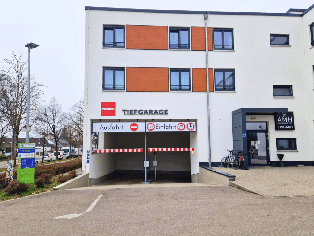 Unsere Tiefgarage im Geschäftshaus Wasserburger Landstraße 47–49 bietet zentrale Parkmöglichkeiten direkt beim B&B HOTEL,