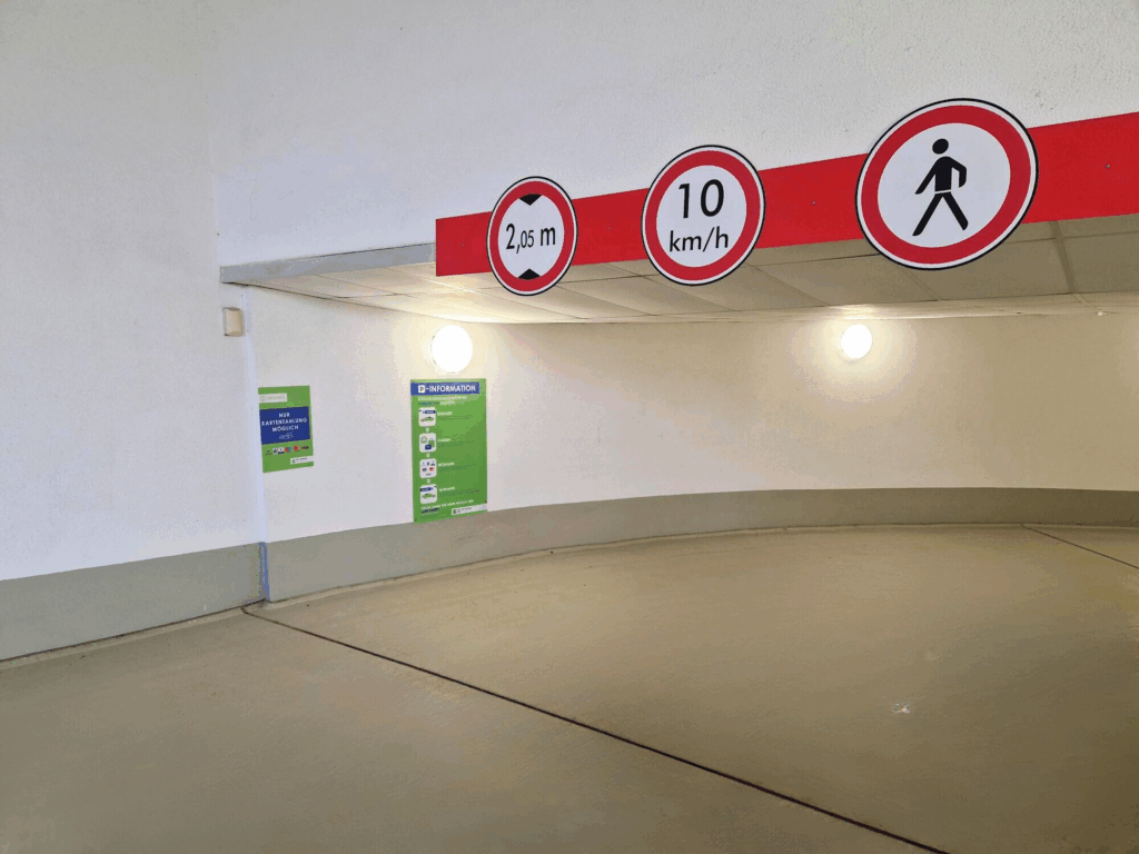 Beachten Sie bitte die maximale Einfahrtshöhe. Denken Sie daran mögliche Antennen zu entfernen oder an Gepäckträger, die auf Ihrem Autodach angebracht sind.​